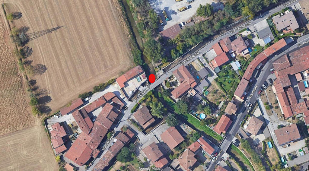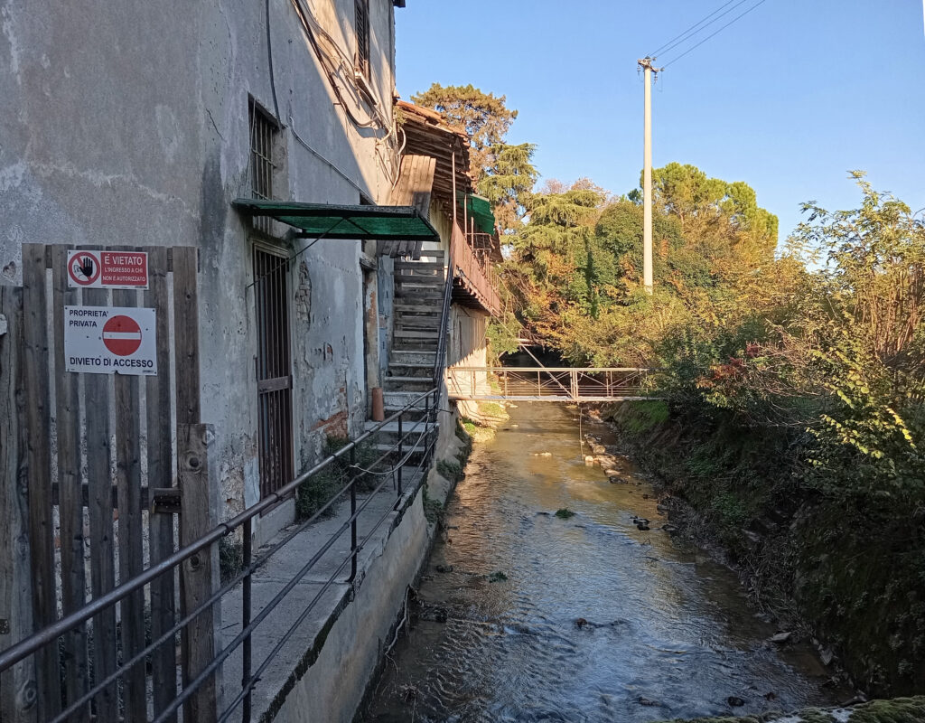 Epoca di costruzione: Risale al 1860. L’edificio era strutturato attorno a un cortile chiuso su tre lati, tipico delle architetture industriali dell’epoca. Attualmente parte dell’edificio è stata ristrutturata e adibita ad abitazioni. La parte a est invece, che costeggia il Naviglio Cerca, è in rovina. Non sono riuscito ad individuare il punto del canale dove era la ruota di trasmissione. Ringrazio Guglielmo Pagani che durante il nostro colloquio mi ha chiarito vari dubbi.